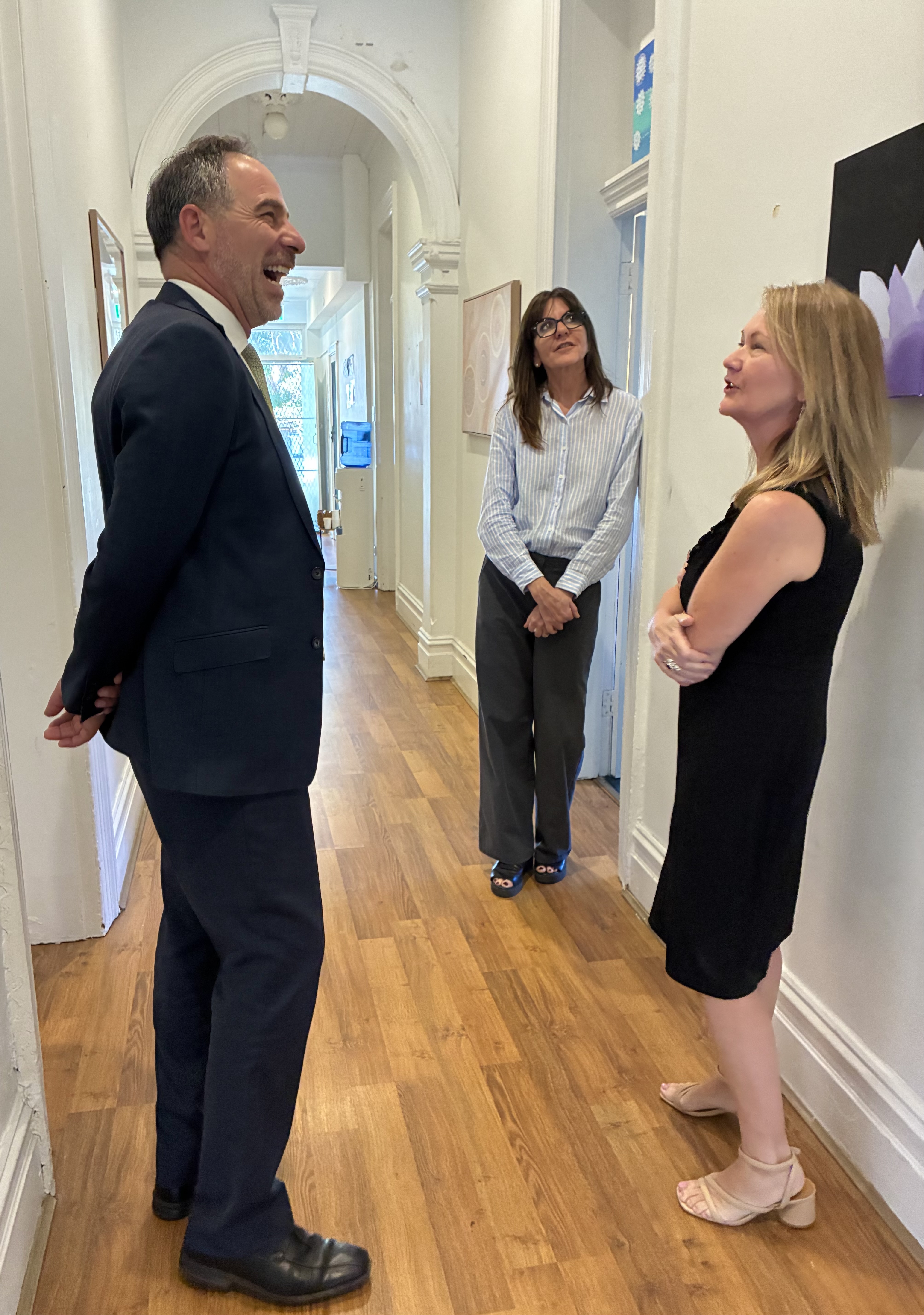 Frontline staff briefed Minister Dib on the Under 16s Refuge, one of the few crisis accommodation options in NSW for children aged 12–15. The team discussed the growing demand for services, the complexity of referrals, and the profound impact of trauma on the experiences of young people entering crisis accommodation and remand settings. Staff emphasised the importance of strong community partnerships and coordinated, wraparound support, highlighting Taldumande’s extensive collaboration with multiple Youth Justice offices across Sydney, demonstrating the breadth and reach of their work supporting young people throughout the city.